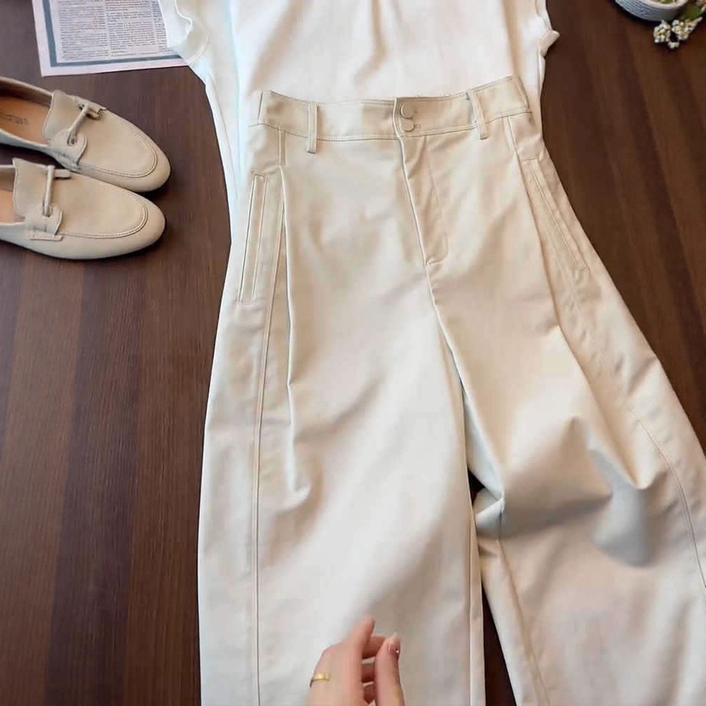 强货赞爆了!米白色高级质感九分休闲裤舒适透气高腰显瘦气球裤女