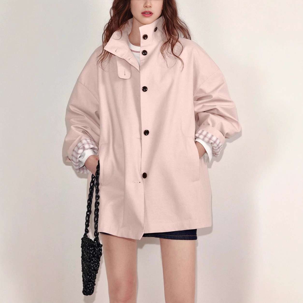 【现货】2025 奶油蜜桃粉袖里撞格短风衣外套女设计感秋法式新款