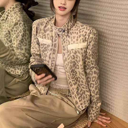 广州品宣Bankeli豹纹限定'小众做旧定染豹纹印花立领外套女秋