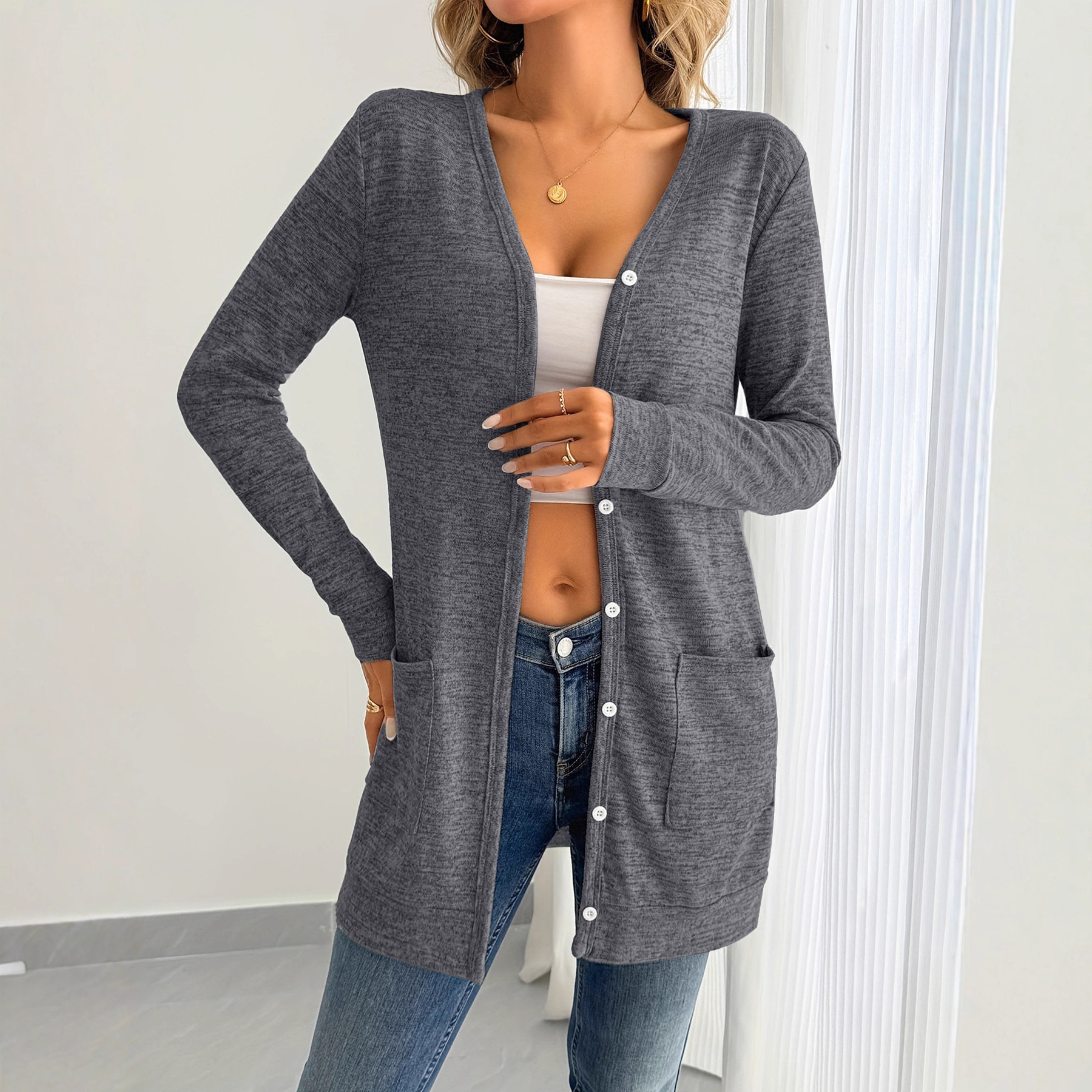2025年欧美跨境亚马逊速卖通eaby新款时尚百搭女装长袖轻便开襟衫