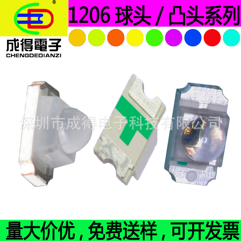 SMD替DIP带凸镜1206贴片凸头黄绿红橙蓝白光各色球头聚光LED灯珠