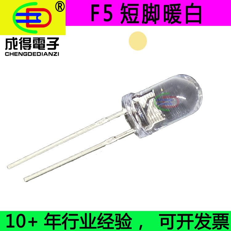 F5mm短脚圆头有边 透明 暖白灯 暖色白光高亮直插LED发光管灯珠