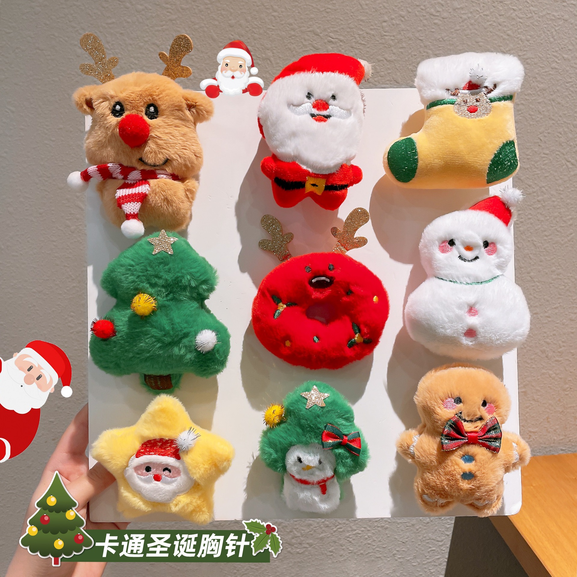 新款圣诞节麋鹿胸针卡通圣诞老人别针小礼品毛绒圣诞树徽章装饰品