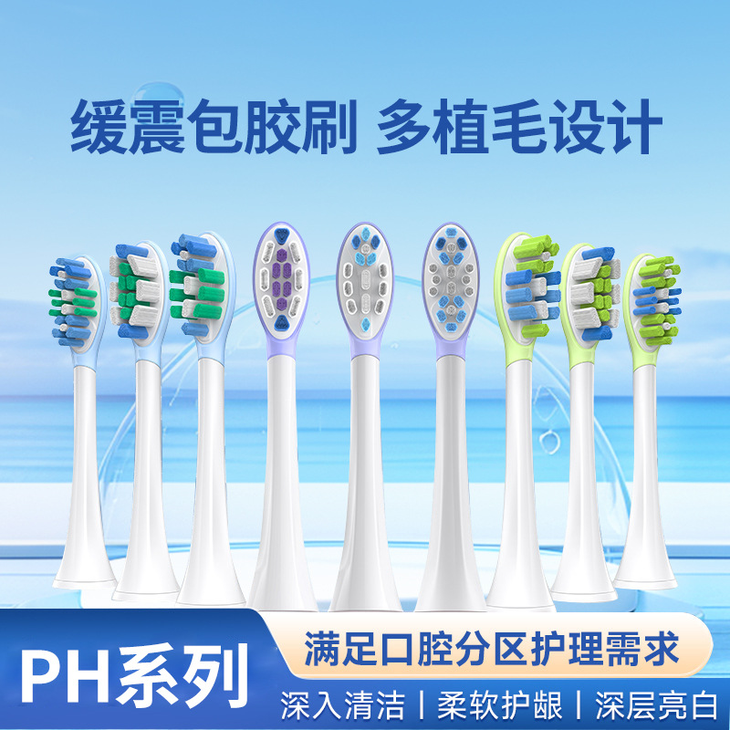 跨境新款缓震包胶成人多效清洁刷适用菲利浦HX369声波电动牙刷头