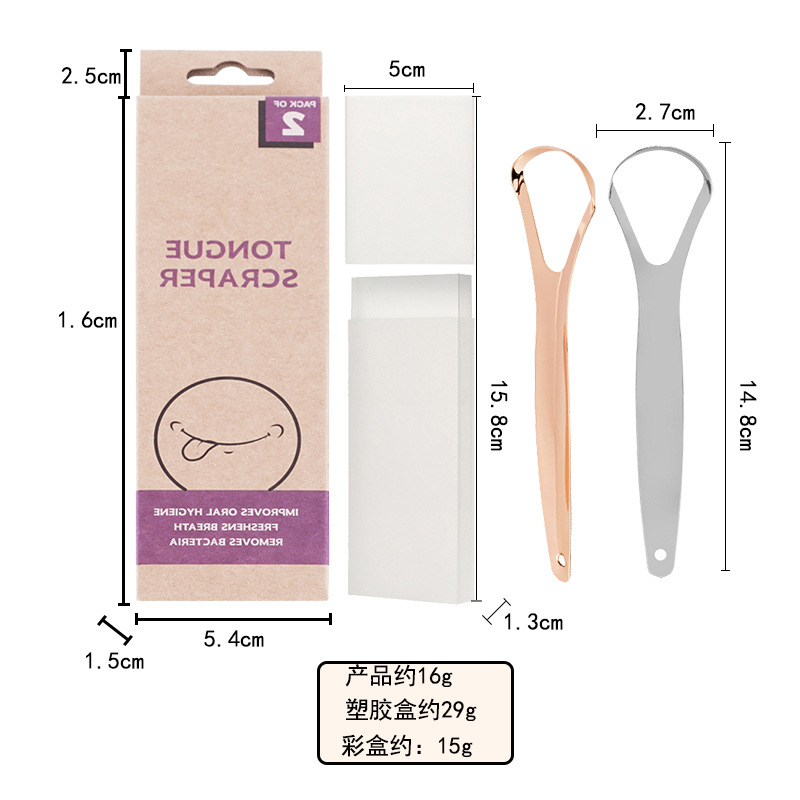 工厂推荐盒装双层舌苔刷刮舌器不锈钢大开口舌苔清洁神器跨境批发