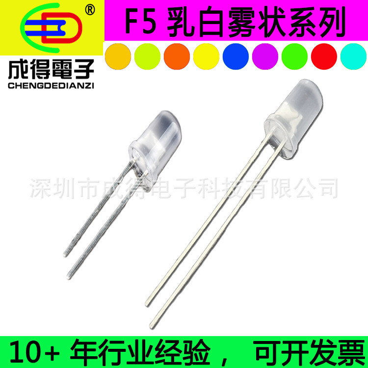雾状F5mm磨砂白发红/黄色/翠绿/蓝光/白光发光二极管LED灯珠散光