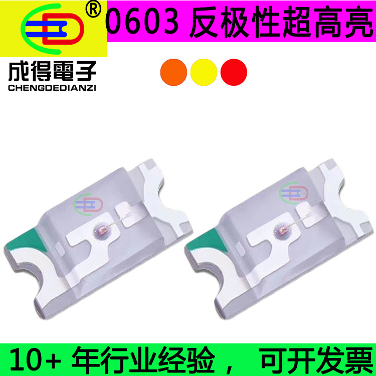 贴片1608/0603反极性 高亮红光 黄色 LED灯珠 红灯 黄灯 橙色