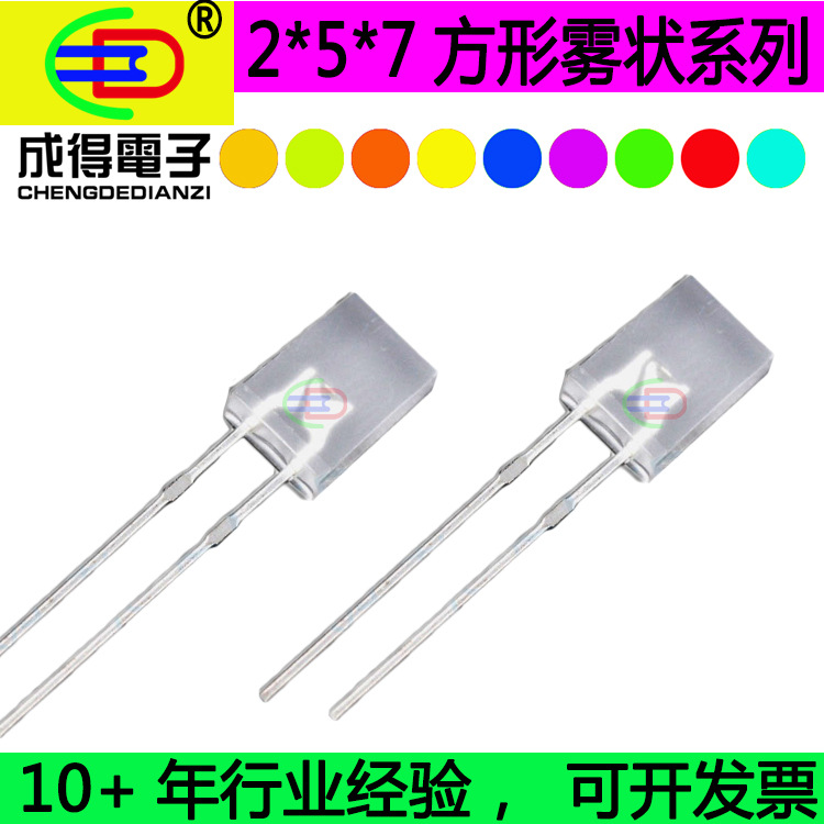 F2*5*7方形雾状乳白发红色/黄灯/蓝光/绿 白灯高亮LED发光二极管