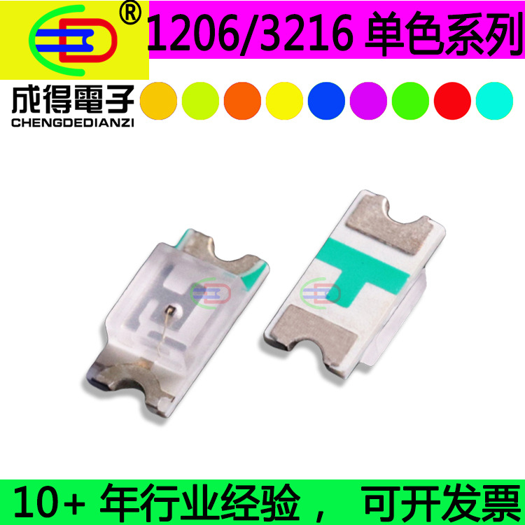 贴片1206LED白发红 橙 黄 翠绿 蓝 紫 冰蓝 粉红色 暖白3216灯珠