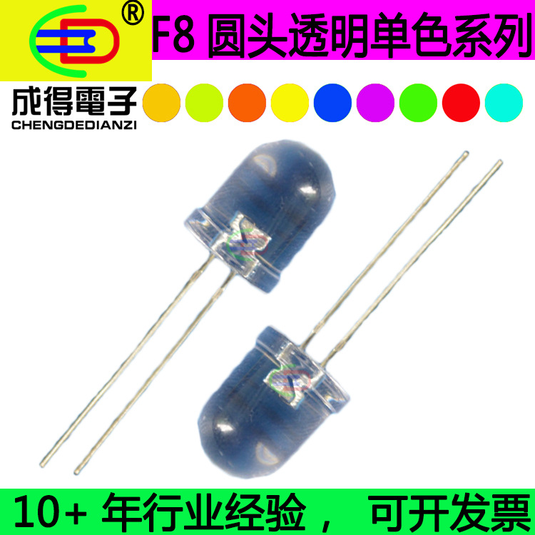 8mm圆头透明白发红色黄绿 蓝灯 白光橙色 暖白光高亮led灯珠 白色