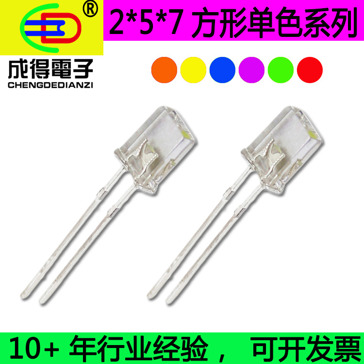 257透明白发红 黄 蓝 翠绿 白色 2x5x7方形高亮灯珠 led发光管