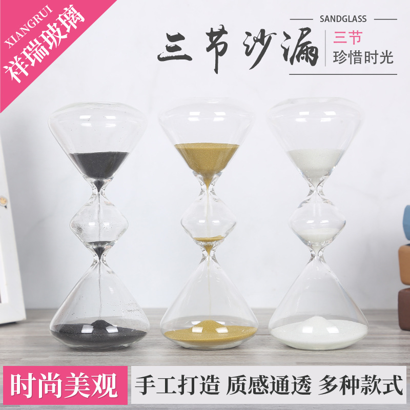 创意简约三节沙漏办公家居摆件沙漏计时器 现代时尚透明玻璃沙漏