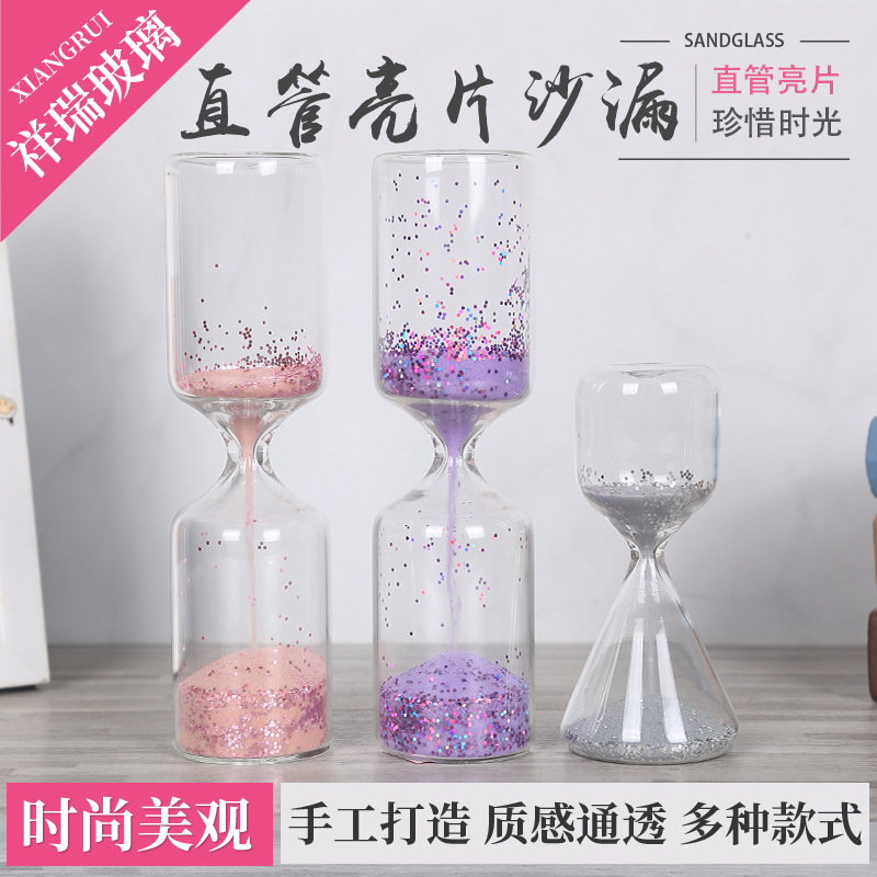 轻奢直管亮片沙漏创意家居摆件沙漏计时器 时尚透明亮片玻璃沙漏