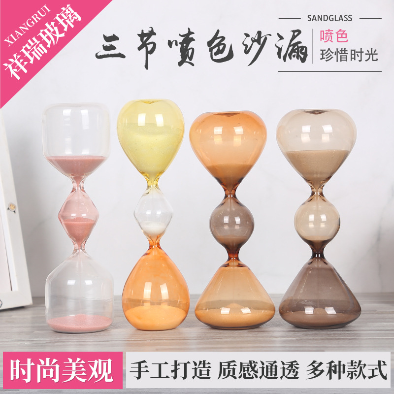 可爱多巴胺三节喷色沙漏创意家居摆件沙漏 时尚透明玻璃计时装饰