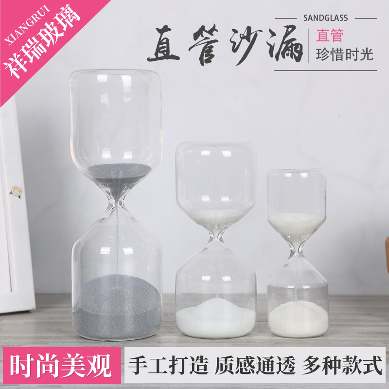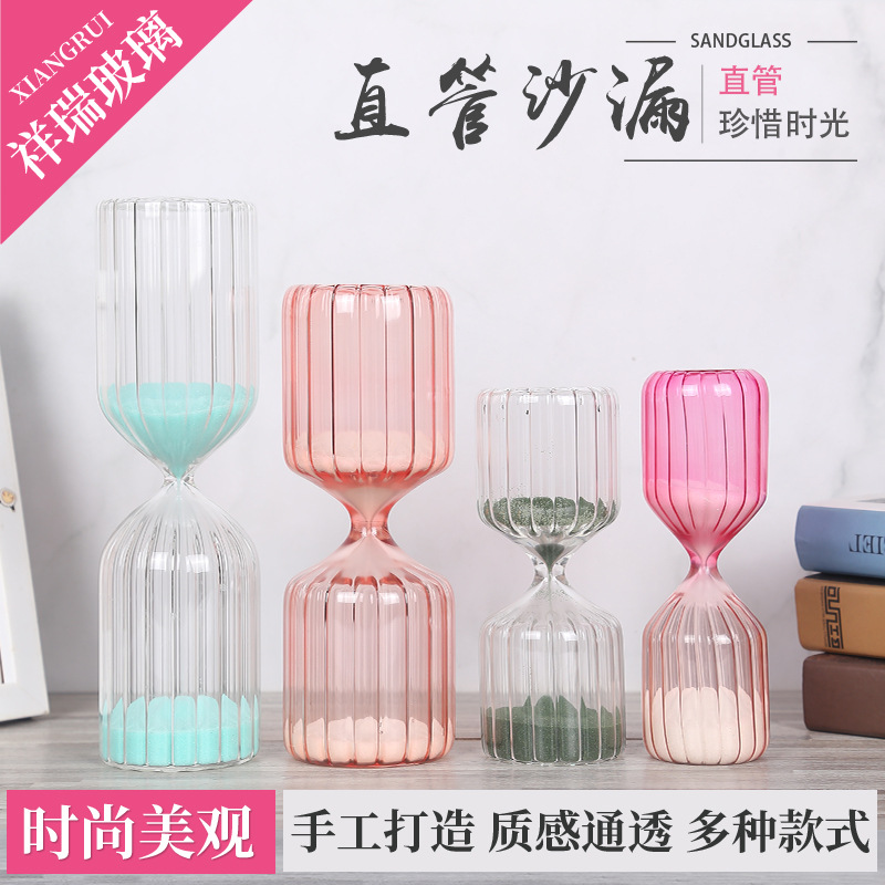 莫兰迪色直管沙漏简约家居摆件沙漏计时器 时尚透明玻璃沙漏