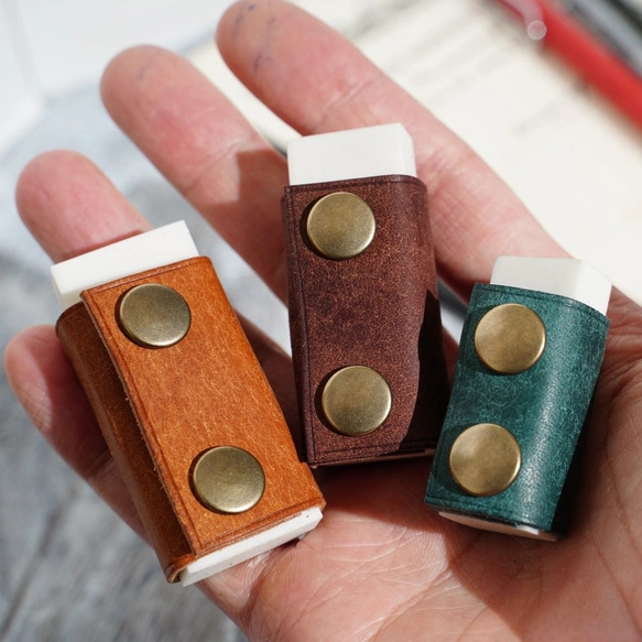 外贸跨境创意高颜值复古按扣橡皮擦皮套 送礼教师橡皮擦防滑皮套