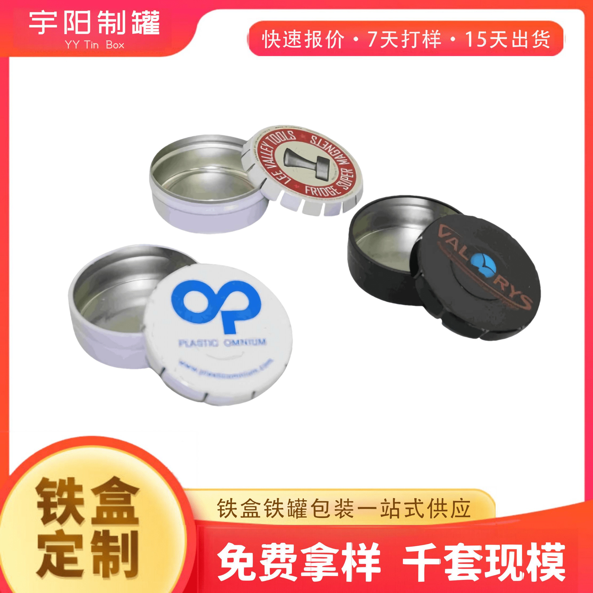 圆形噼啪盖铁盒 啪啪盖糖果马口铁小圆罐 五金配件按压弹盖金属盒