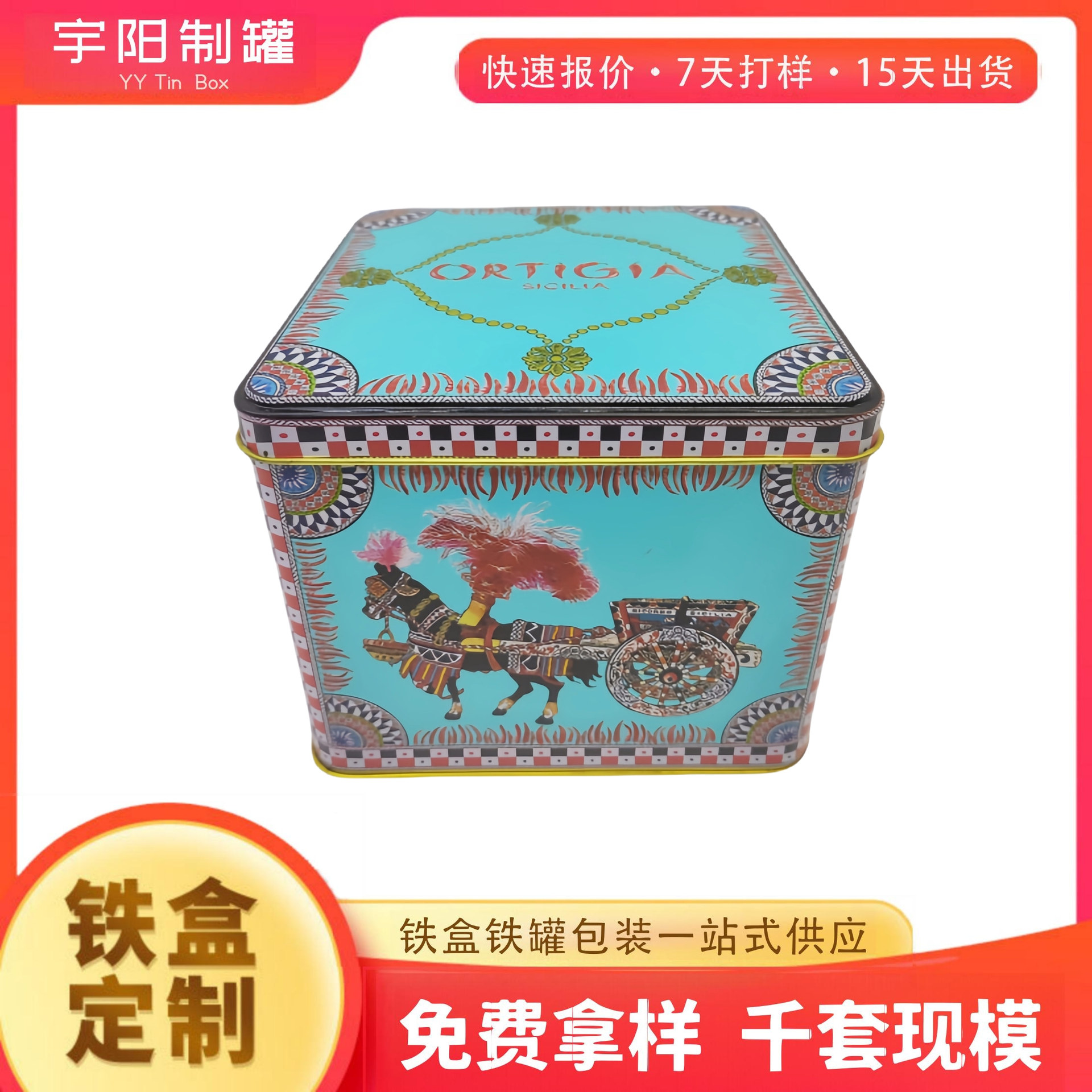 正方形巧克力铁盒定制金色食品级扣嘴马口铁罐普洱茶饼包装金属盒