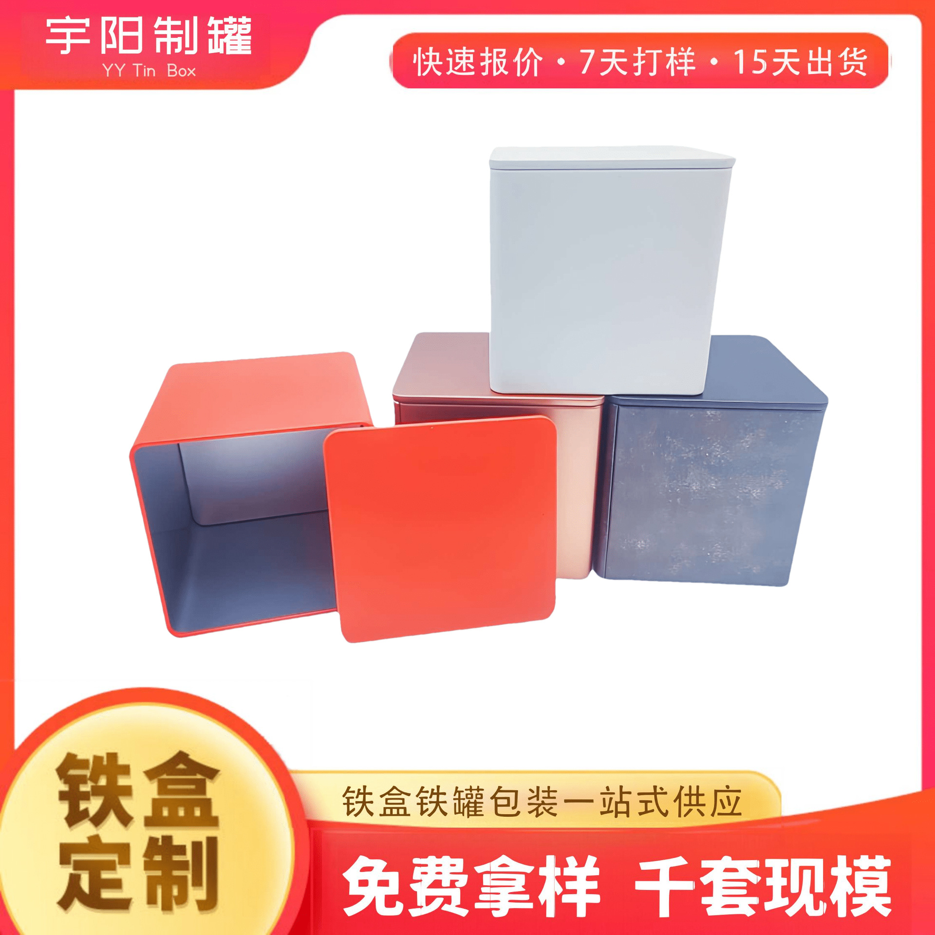 定制高山茶包装铁盒 正方形白茶内盖茶叶铁罐50g茶叶通用马口铁盒
