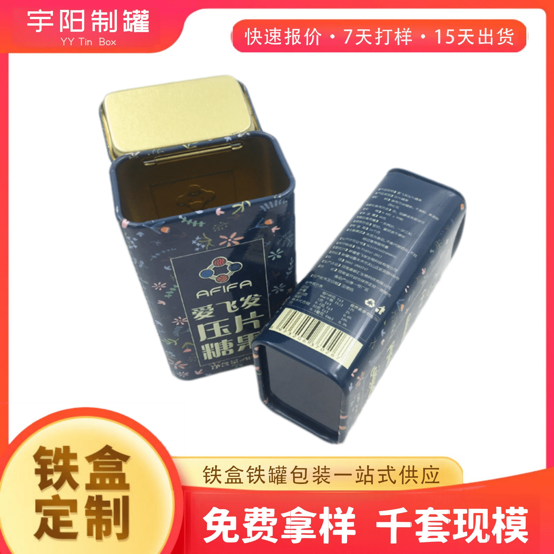 85内塞盖铁罐正方形茶叶罐烟草套装金属盒薄荷糖口香糖马口铁盒子