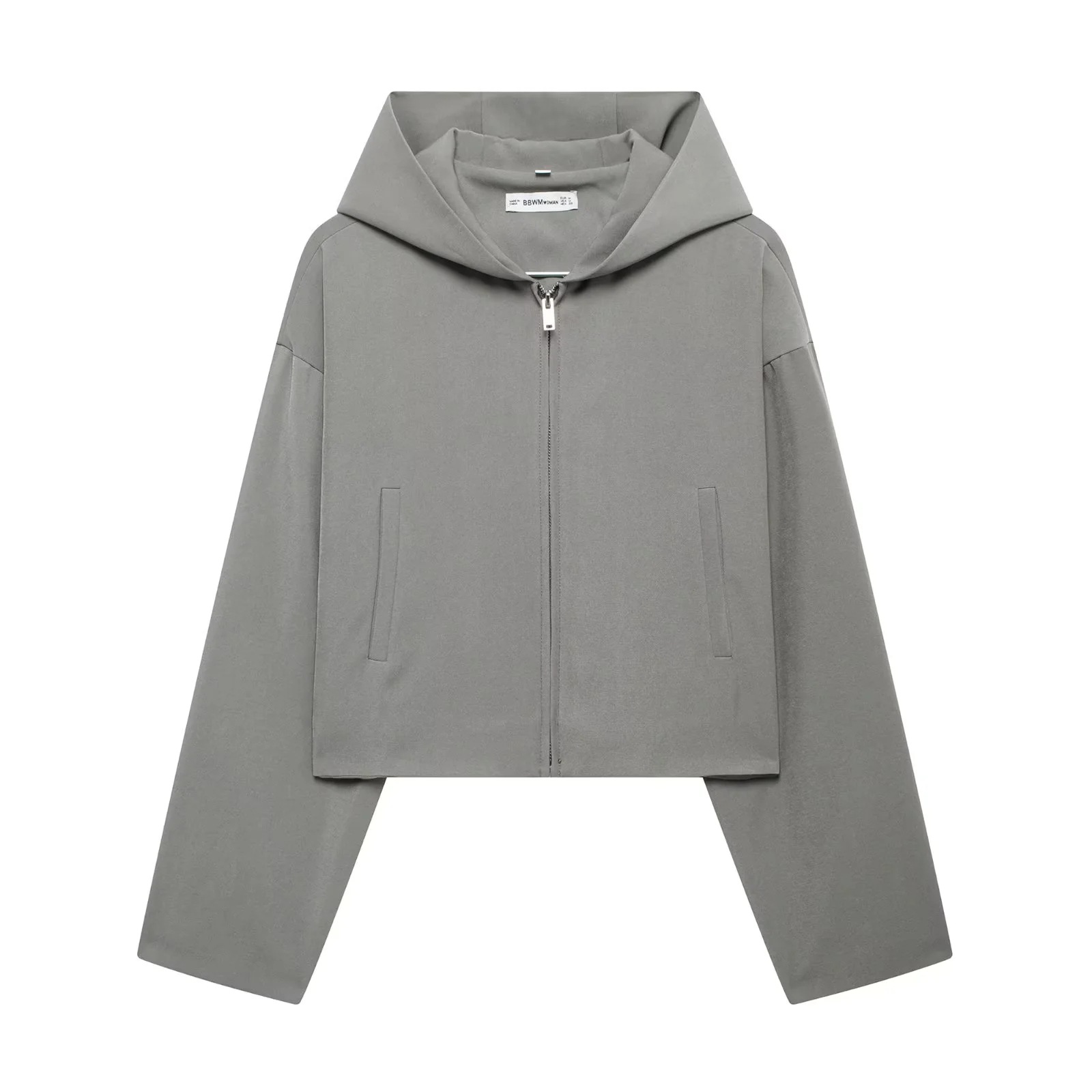 外贸批发2025秋季新款欧美女装连帽休闲简约百搭短款夹克外套