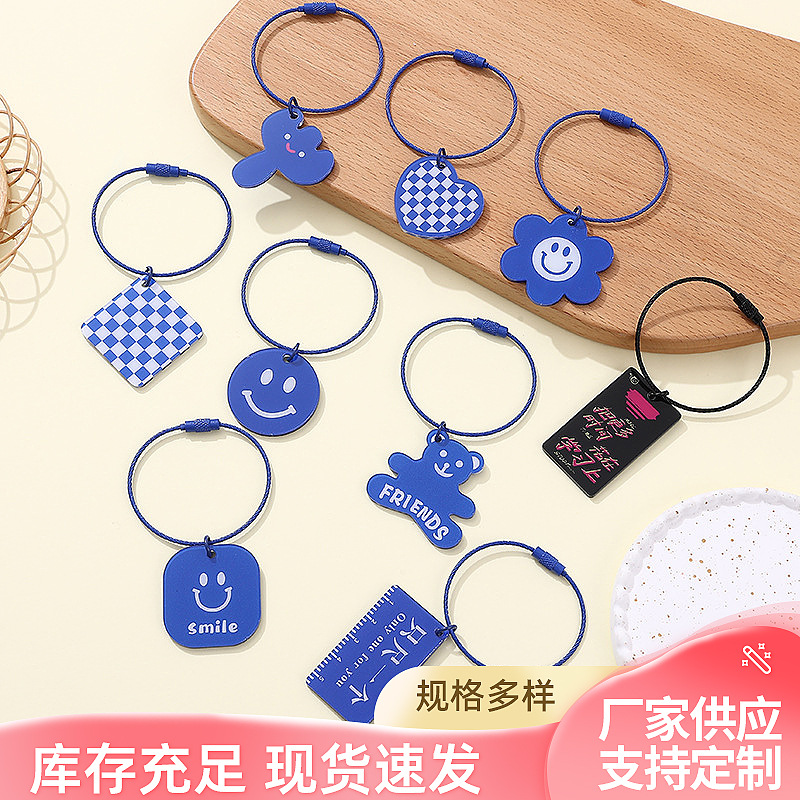 克莱因蓝亚克力双面牌钥匙扣精致笑脸太阳花汽车抱抱挂饰挂件批发