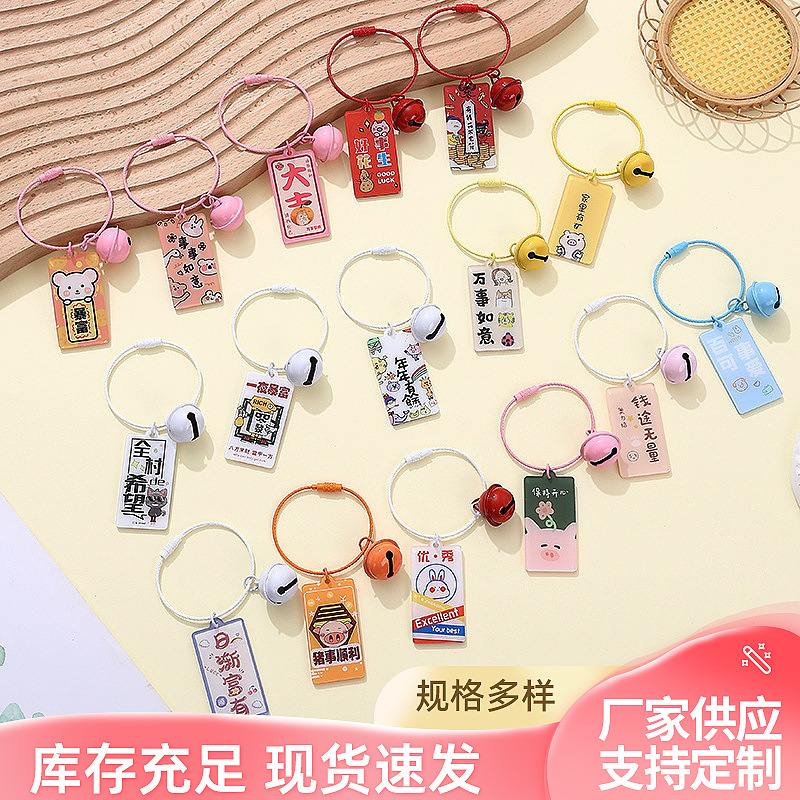 亚克力钥匙扣diy挂件双面文字牌暴富祝福牌书包车钥匙钢丝圈挂饰