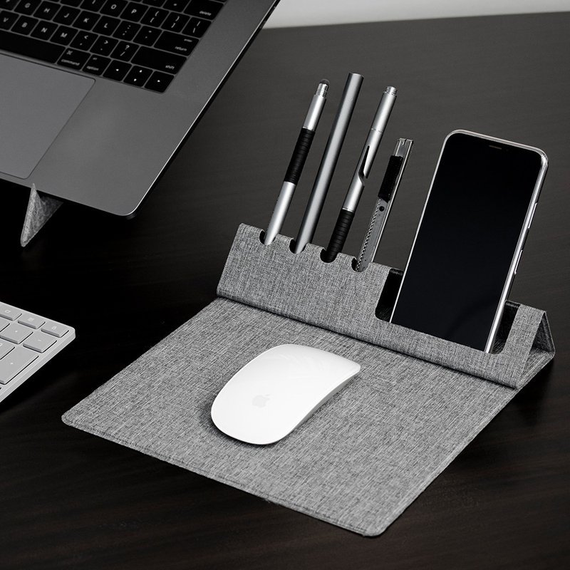 简约纯色商务办公书桌多功能鼠标垫笔架手机支架 可折叠三角笔架