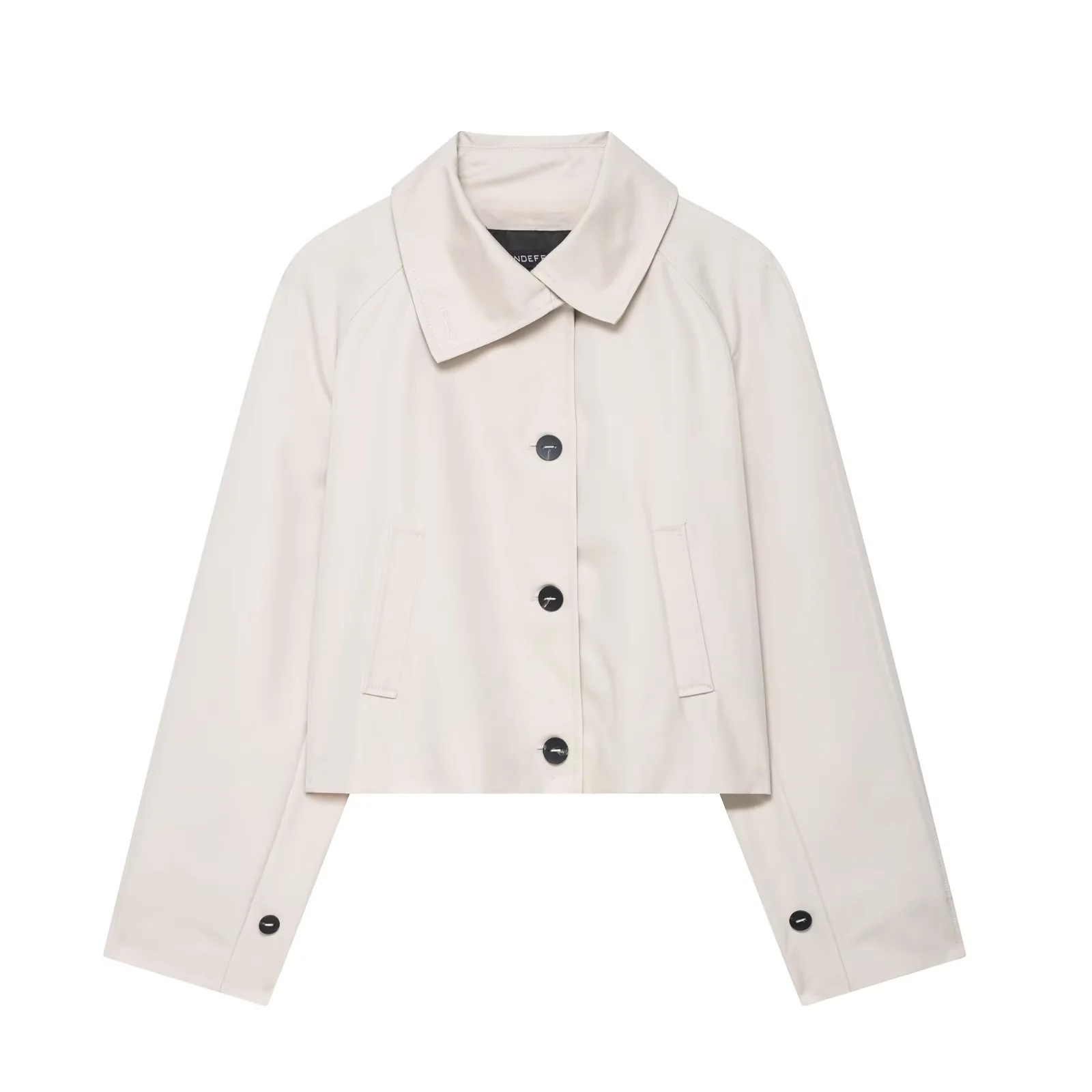 外贸批发2025秋季新款欧美女装简约百搭翻领防水短款风衣夹克外套