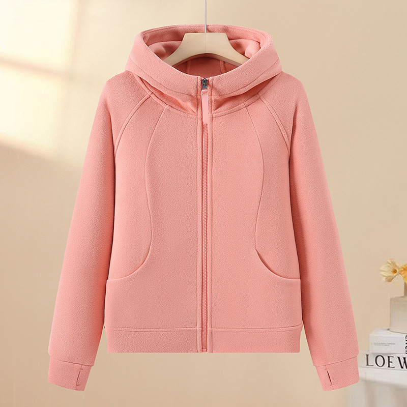 中年女士春秋连帽摇粒绒户外休闲运动卫衣外套妈妈保暖开衫抓绒衣