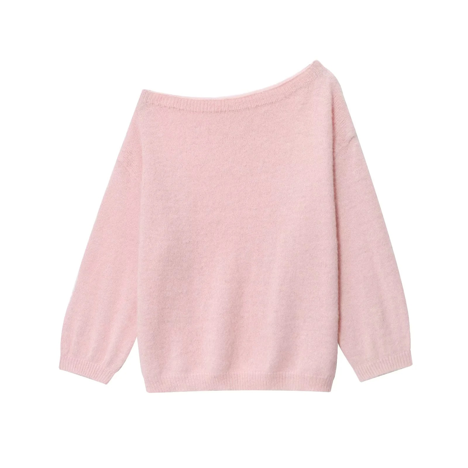 2025秋季新款欧美风女装法式慵懒温柔风一字领软糯针织衫宽松毛衣