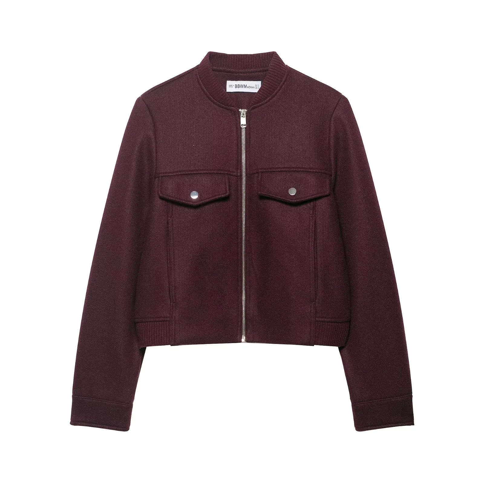 跨境批发2025秋季新款欧美风时尚休闲立领拉链软质短款夹克外套女