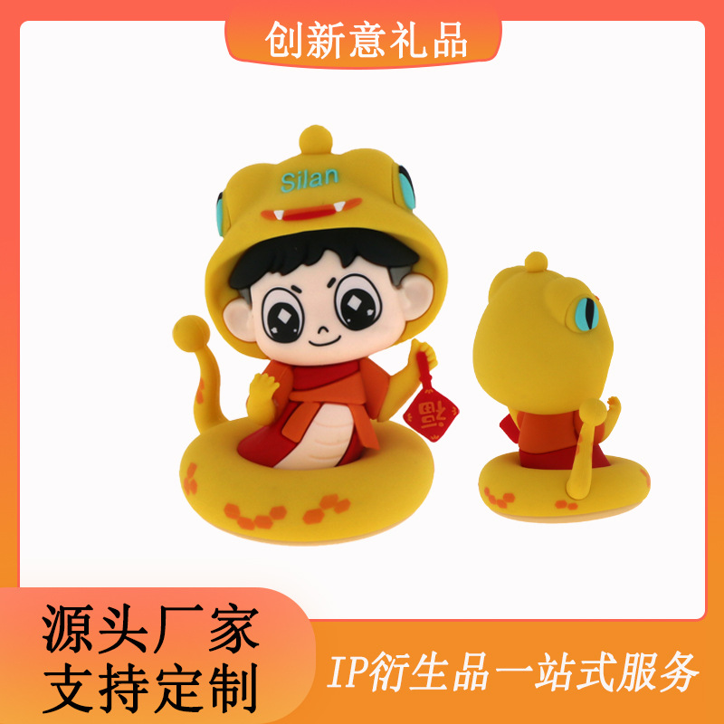 pvc软胶3D立体公仔生肖IP定做企业吉祥物蛇年可爱公仔摆件定制