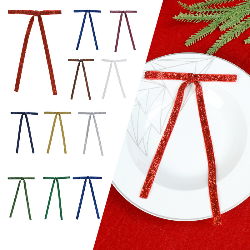 跨境新品 圣诞节装饰品 24个金葱带蝴蝶结圣诞树挂件 DIY礼物配件