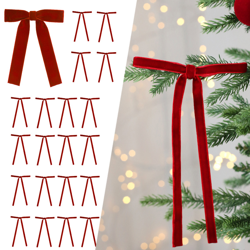 跨境新品 圣诞节装饰品 24个酒红绒布蝴蝶结 圣诞树挂件 礼品配件