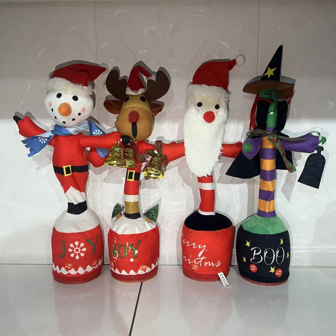 跨境万圣节电动玩具会唱歌发光摇摆万圣老人麋鹿雪人礼物装饰摆件
