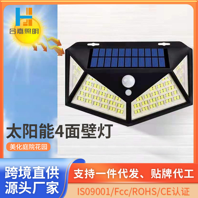 太阳能4面壁灯太阳能感应灯四面发光灯防水壁灯室外庭院灯家用
