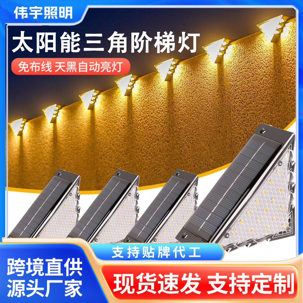 太阳能三角形台阶灯太阳能灯户外庭院灯天黑自动亮防水氛围灯灯