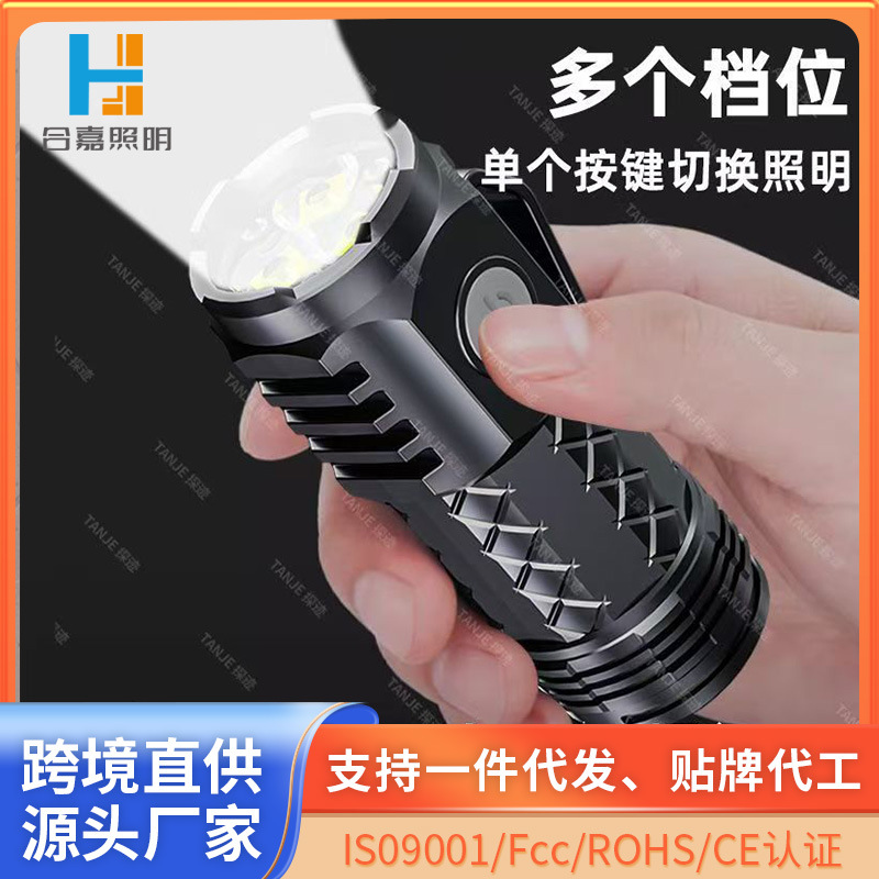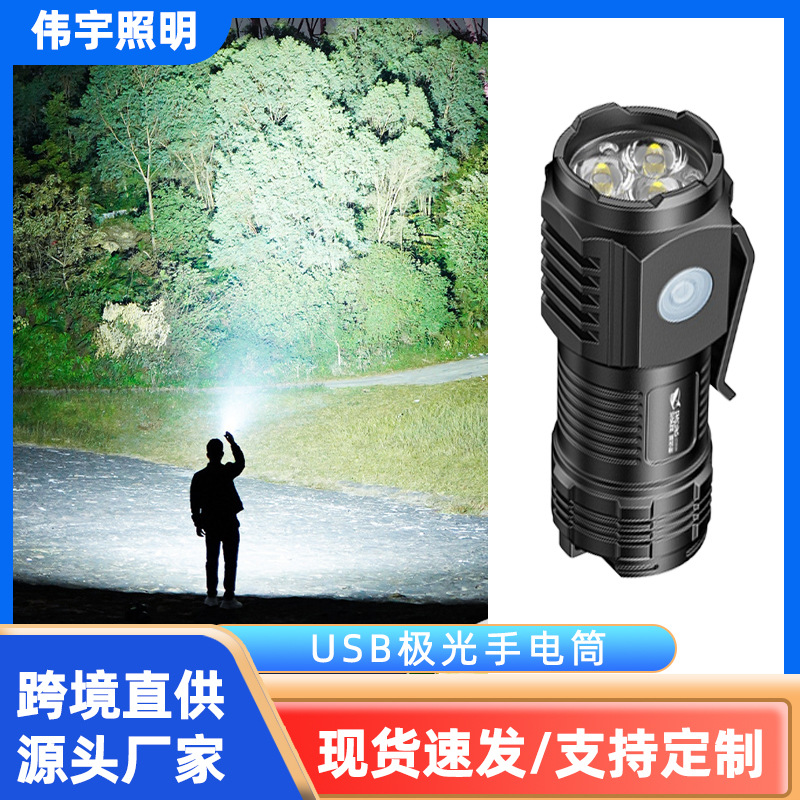 USB极光手电筒迷你便携小手电户外多功能夹帽灯手电可充电