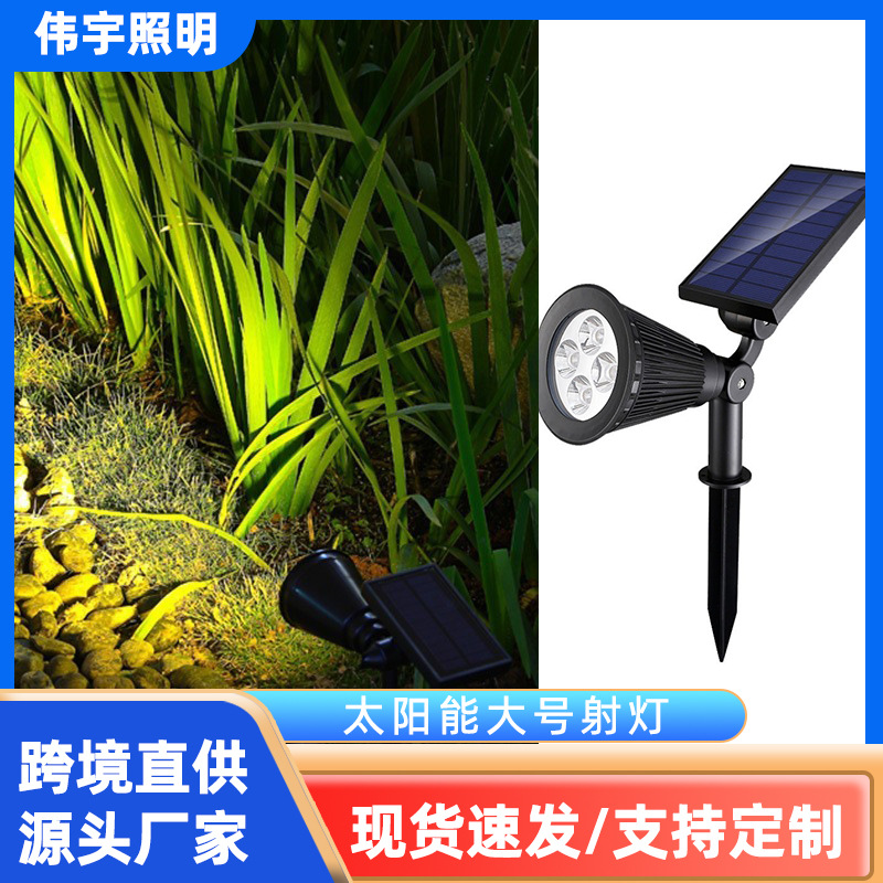 跨境专供太阳能大号射灯户外超亮防水插地草坪家用室外景观庭院灯