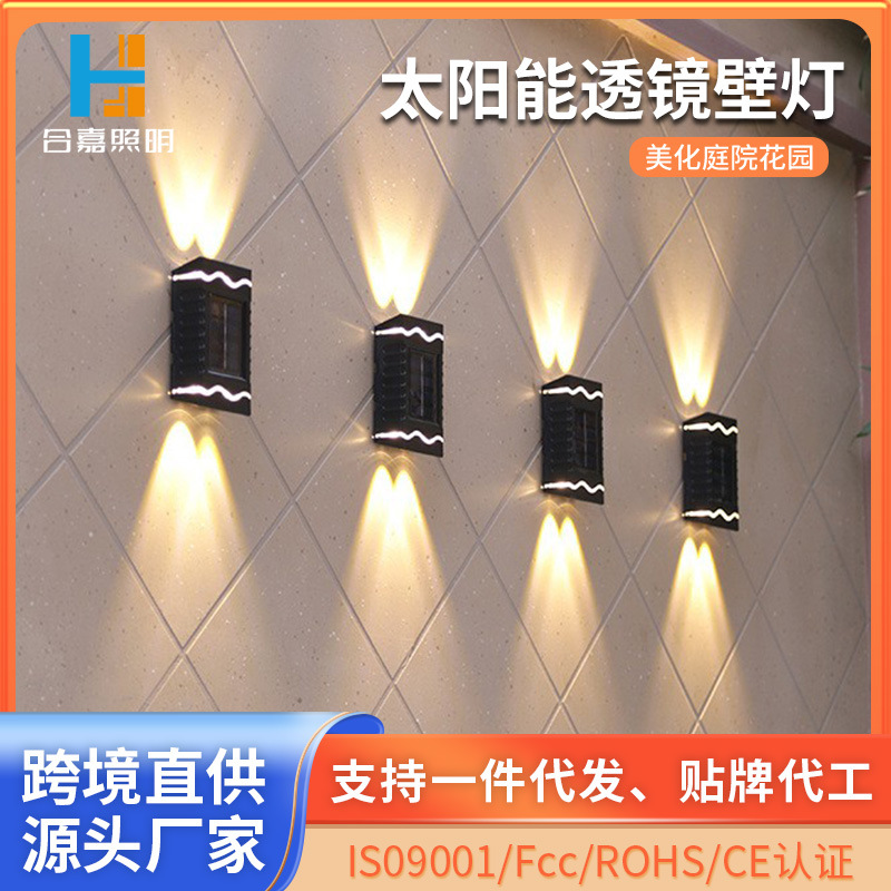 太阳能透镜壁灯洗墙灯户外庭院壁灯花园氛围灯凸透镜上下发光射灯