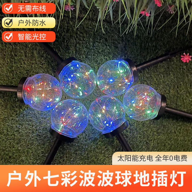 太阳能草坪灯户外庭园花园七彩波波球地插灯防水阳台景观灯灯防雨