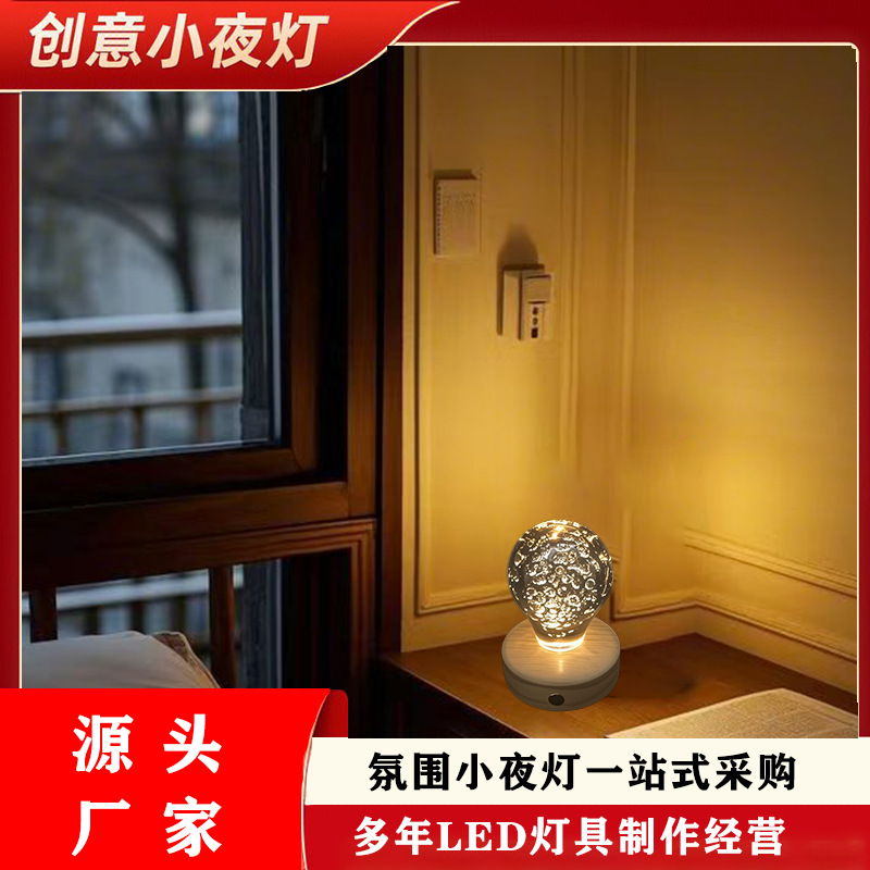 热卖水晶球小夜灯桌面摆件创意氛围感掌柜推荐礼物中山灯具啪啪灯