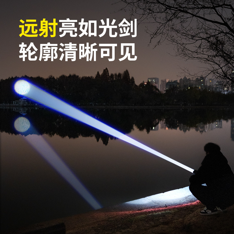 镭射新款超级强光手电筒充电家用续航户外远射超亮大功率