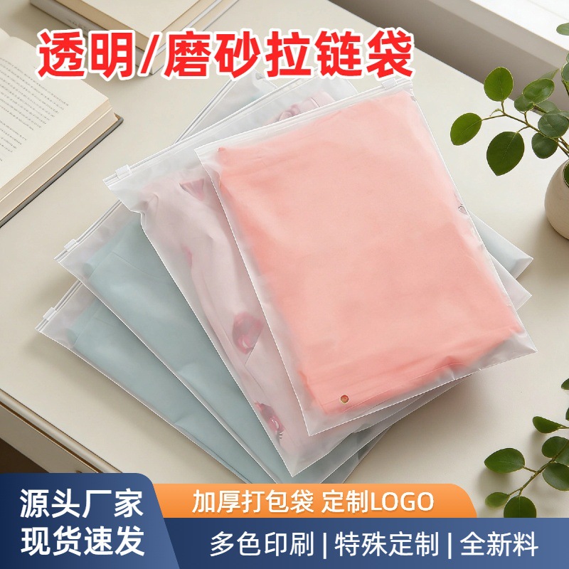 现货透明磨砂拉链袋pe服装包装袋加厚衣服袜子警示语透明拉链袋