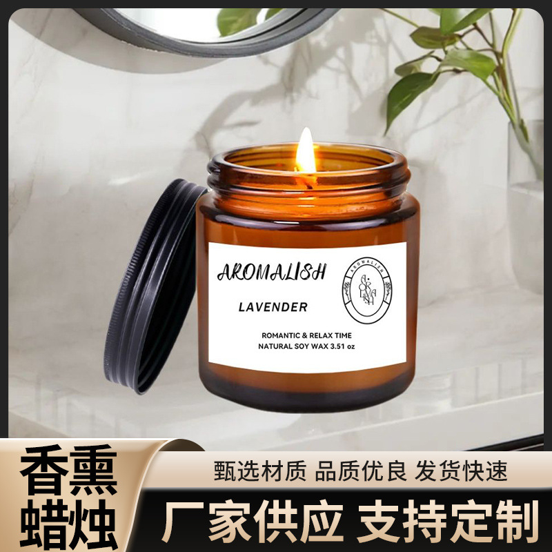 新款玻璃铝盖款香薰蜡烛 天然植物大豆蜡家用熏香卧室香氛助眠