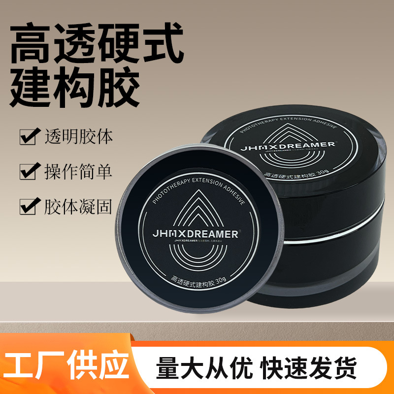 新款美甲高透硬式建构胶 美甲胶30ml果冻质感封层粘钻加固贴片胶