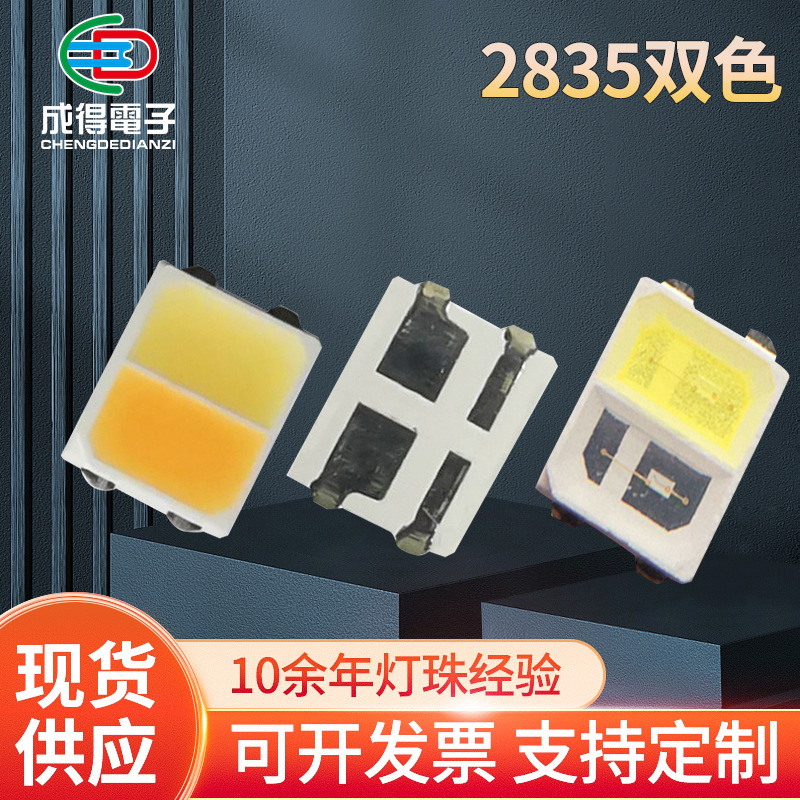 贴片高显2835正白+暖白双色LED灯珠双色温红白红蓝绿指示灯珠