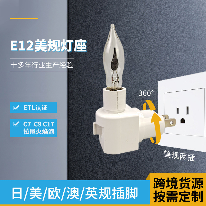 外贸跨境E12插电灯头etl认证美标美规插座带开关智能光控光感灯座