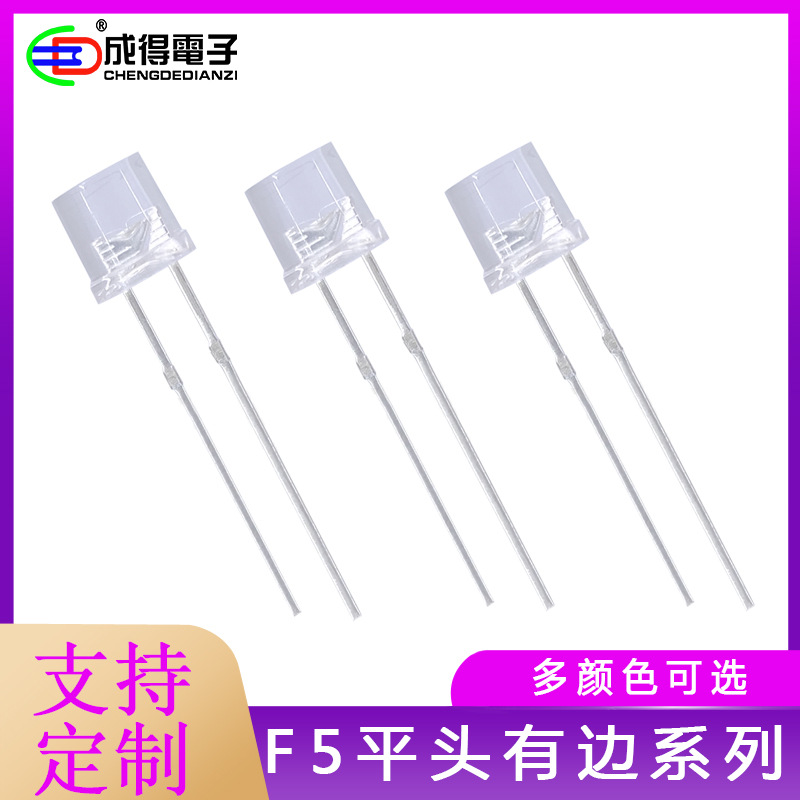 F5mm平头有边白发红灯橙黄绿蓝白紫灯粉色高亮LED灯珠发光二极管